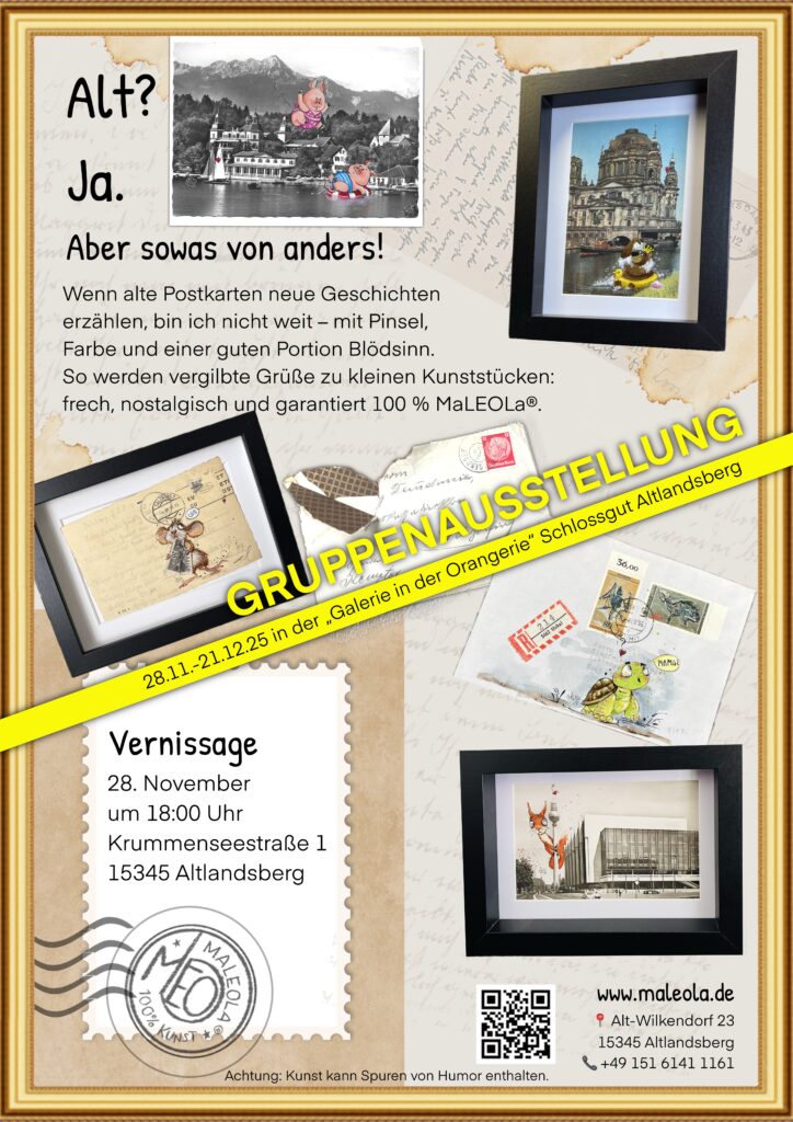 Ausstellung im Krankenhaus Strausberg. maleola querbeet – alte Schinken, neue Arbeiten, Tiere, Farbe und alles, was mein Atelier hergibt.