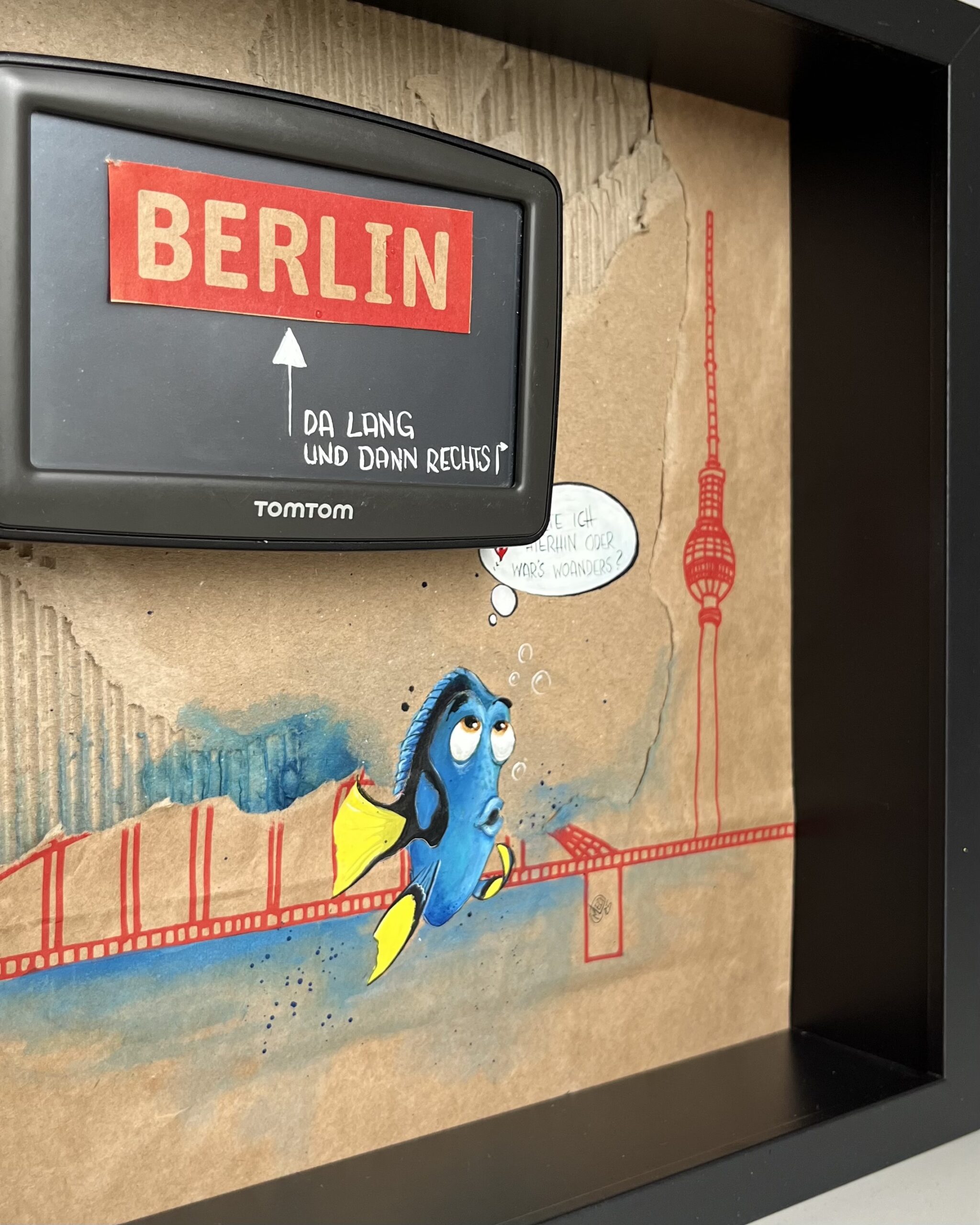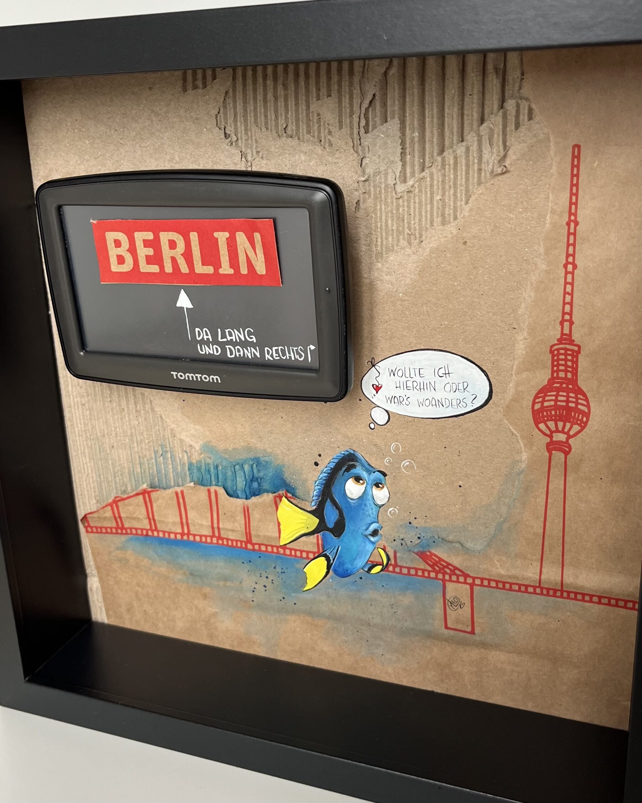 🐟 Kunst auf Wellpappe trifft Hauptstadt-Flair und ein Navi, das auch keine Ahnung hat.