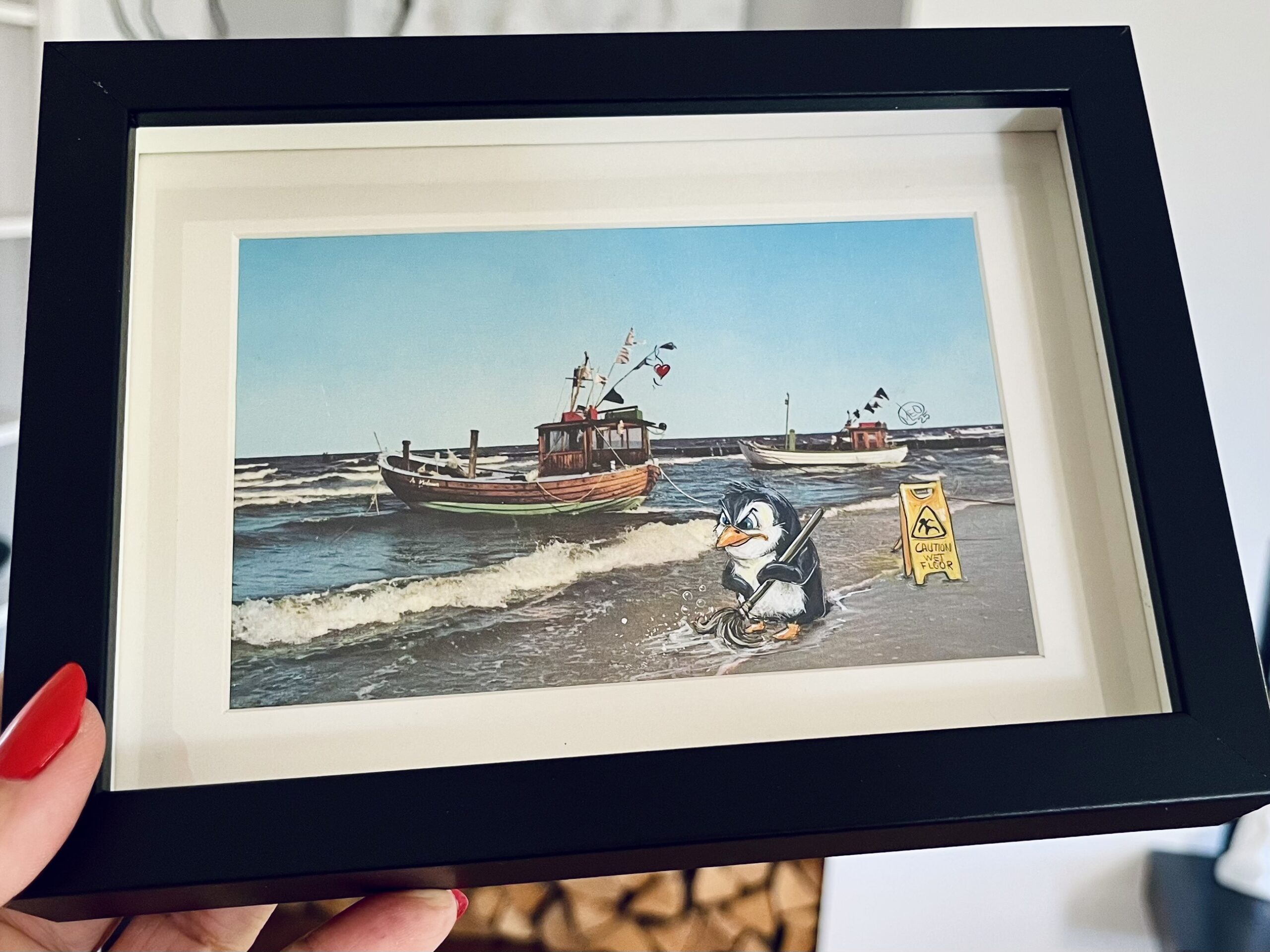 #pinguinmitmopp #wischwischbaby#klimawandelistkeinwitz #upcyclingkunst#maleola #postkartensatire #trockenerhumor#illustrationmitbiss #künstlerinnenleben#ostseekarte